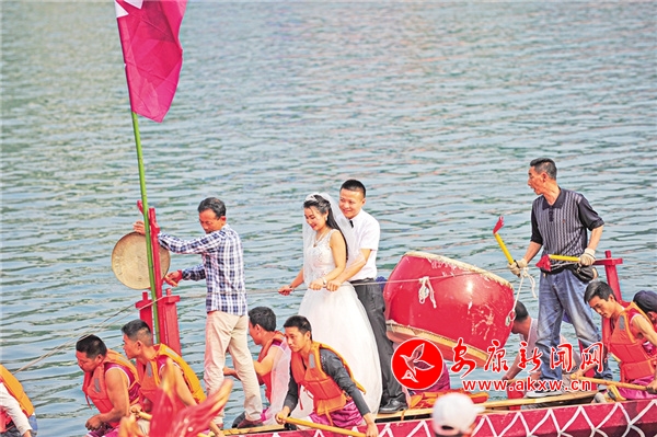 2017年,第十七屆安康龍舟節(jié)開幕式上的水上婚禮。 林江 攝