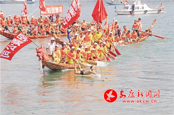 2017年,第十七屆安康龍舟節(jié)開幕式上的傳統(tǒng)項(xiàng)目“搶鴨子”。張喬 攝