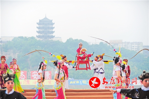 2015年,第十五屆安康龍舟節(jié)開幕式上的戲曲表演。 林江 攝
