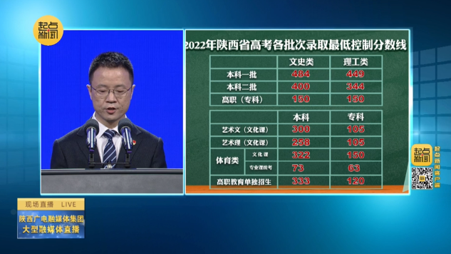 本網(wǎng)訊 6月24日,據(jù)2022年陜西省高考各批次錄取分?jǐn)?shù)線新聞發(fā)布會公布,陜西的理工類分?jǐn)?shù)線本科第一批為449分、第二批344分、?疲ǜ呗殻┡150分;文史類分?jǐn)?shù)線,本科一批484分、二批400分、?疲ǜ呗殻┡150分。