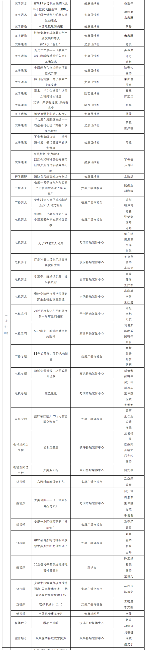 2021年度安康新聞獎(jiǎng)評(píng)審工作在中共安康市委宣傳部的指導(dǎo)下,由市記協(xié)具體組織實(shí)施,經(jīng)過各申報(bào)單位推薦,市記協(xié)初審、復(fù)審并組織專家定評(píng),評(píng)選出擬獲安康新聞獎(jiǎng)作品114件,其中一等獎(jiǎng)25件、二等獎(jiǎng)40件、三等獎(jiǎng)49件。