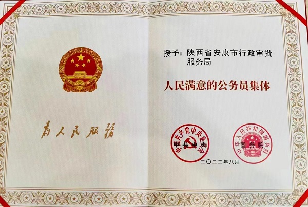 安康市鄉(xiāng)村振興局黨組副書記、副局長劉子龍榮獲全國“人民滿意的公務員”稱號,安康市行政審批服務局榮獲全國“人民滿意的公務員集體”稱號。