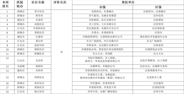 附件:市、區(qū)兩級(jí)部門(mén)、單位幫扶社區(qū)(村)周排名情況一覽表