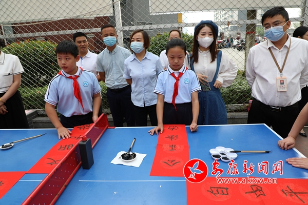 簡短的啟動儀式結(jié)束后,市創(chuàng)文辦一行參觀了社區(qū)書吧,并在運動場觀看未成年人展示活動。展示內(nèi)容主要包括現(xiàn)場書寫社會主義核心價值觀、集體花樣跳繩、籃球訓練、獨唱、個人武術(shù)和倡議書宣讀,F(xiàn)場,同學們身著整齊的服裝,戴著鮮艷的紅領巾,精神煥發(fā)地來到展示場地。在熱烈歡快的節(jié)奏中,一張張笑臉洋溢著自信和陽光,舉手投足間盡顯安康少年風采。流暢的書法、炫酷的跳繩、優(yōu)美的歌聲、靈動的棍法……孩子們的精彩表演引來一眾居民駐足圍觀,不時傳來熱烈掌聲。