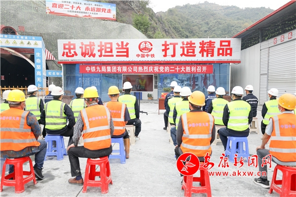 △中鐵九局西康高鐵項(xiàng)目部組織工作人員收聽收看中國共產(chǎn)黨第二十次全國代表大會開幕會直播。(記者 羅超)