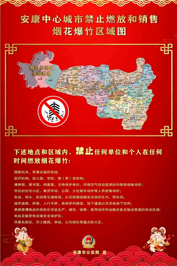 安康中心城市禁止燃放和銷售煙花爆竹區(qū)域圖