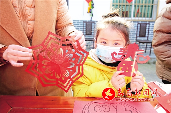 7、春節(jié)期間,漢濱區(qū)非遺剪紙深受廣大群眾喜愛(ài)。圖為剪紙非遺傳承人在建民街道徐家溝社區(qū)現(xiàn)場(chǎng)教授剪紙,初學(xué)的小朋友向大家展示作品。
