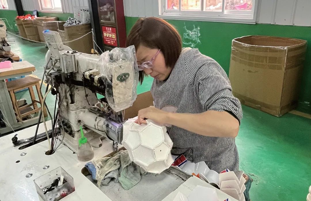 近日,在漢陰縣興隆佳苑社區(qū)工廠內(nèi),40歲的脫貧戶張麗正在“縫制足球”,每月平均收入2600元左右。農(nóng)民日?qǐng)?bào)·中國(guó)農(nóng)網(wǎng)記者 韓嘯 攝
