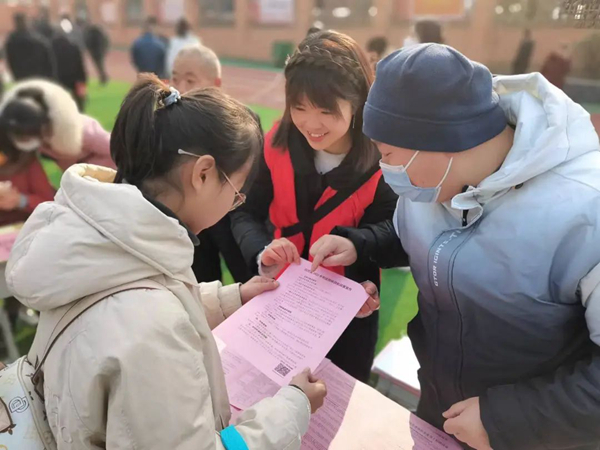 2月1日,中廠鎮(zhèn)機(jī)關(guān)支部黨員在宣傳政策。通訊員 王婷 攝
