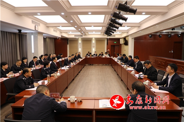 王彪一行先后到12309檢察服務(wù)中心、案管大廳、檢察公開聽證室、指揮中心、新媒體工作室進(jìn)行實(shí)地調(diào)研。王彪強(qiáng)調(diào),人民檢察院是國家的法律監(jiān)督機(jī)關(guān),是國家監(jiān)督體系的重要組成部分,在推進(jìn)全面依法治國、建設(shè)社會主義法治國家中發(fā)揮著重要作用。要堅(jiān)持黨的領(lǐng)導(dǎo),把深入貫徹黨的二十大精神作為首要政治任務(wù),貫通落實(shí)習(xí)近平法治思想,扎實(shí)抓好主題教育,不斷錘煉忠誠干凈擔(dān)當(dāng)?shù)恼纹犯。要服?wù)中心大局,切實(shí)維護(hù)國家政治安全、社會安定、人民安寧、網(wǎng)絡(luò)安靖,主動(dòng)融入共建共治共享社會治理格局,自覺護(hù)航幸福安康建設(shè),為經(jīng)濟(jì)社會高質(zhì)量發(fā)展提供堅(jiān)強(qiáng)的司法保障。要強(qiáng)化法律監(jiān)督,依法履行好刑事、民事、行政和公益訴訟等檢察監(jiān)督職能,維護(hù)社會公平正義,維護(hù)國家法制統(tǒng)一、尊嚴(yán)和權(quán)威。要鍛造過硬隊(duì)伍,緊扣“三個(gè)年”活動(dòng)安排,全面從嚴(yán)管黨治檢,持續(xù)推進(jìn)政治建設(shè)和業(yè)務(wù)建設(shè)深度融合,提升檢察人員政治素質(zhì)和專業(yè)素養(yǎng),高標(biāo)準(zhǔn)淬煉忠誠干凈擔(dān)當(dāng)?shù)男聲r(shí)代檢察鐵軍。