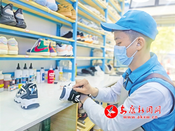 去年5月王輝遠(yuǎn)赴鄭州培訓(xùn),去年10月開業(yè)到今年4月中旬,店里的生意越來越有起色,王輝擔(dān)心的事情卻越來越多。“口碑有了,接到的單子也更多。能送來洗的鞋基本都不便宜,最貴的幾千上萬的都有。貴的鞋還是只能我洗,不然一個(gè)月洗壞那么幾雙這店開不下去。”王輝直言,現(xiàn)在最操心的就是一旦自己離開,這個(gè)店是否還能正常運(yùn)轉(zhuǎn)。