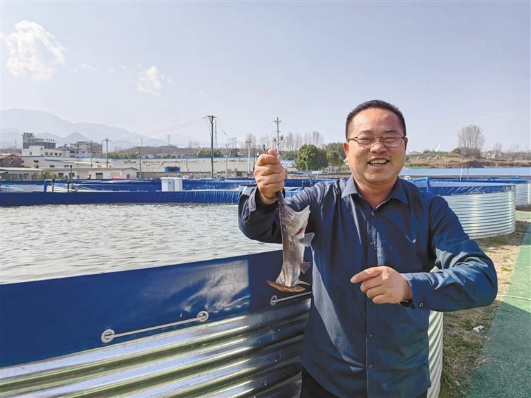 “2021年,我們村和鄰村的一家企業(yè)聯(lián)合發(fā)展?jié)O業(yè),我將自家的1.4畝閑置地流轉(zhuǎn)給軍壩村水產(chǎn)養(yǎng)殖基地,不僅每年有1000元的土地流轉(zhuǎn)收入,而且還被該基地聘為工作人員,月工資2500元。”謝祖勝說,“我管護(hù)的魚塘里有1萬尾魚,我每天要給魚喂食4次,還要觀察魚是否受傷或有寄生蟲等。如果管護(hù)得好,公司每月再獎勵我500元。”