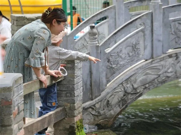 饒峰驛站的親子游樂園傳來孩子們的歡聲笑語,爛漫且文藝的月季花長廊下坐滿了游客,高空漂流的入口排滿了長隊,小朋友在露營燒烤的草坪上快樂奔跑、拍照留影,成為景區(qū)內(nèi)又一道美麗的風(fēng)景線。