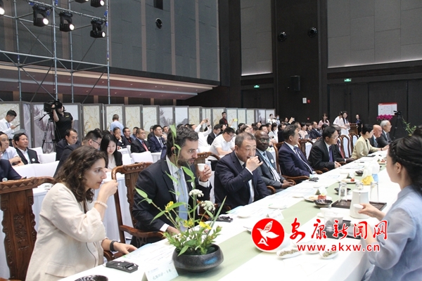 志合者,不以山海為遠(yuǎn)。鐘洪江代表陜西省政府向與會(huì)嘉賓表示誠摯歡迎,向長期以來關(guān)心支持陜西發(fā)展的國際友人表示衷心感謝。他表示,2000多年前,中國茶葉從長安古城出發(fā),沿著絲綢之路遠(yuǎn)銷海外,成為東西方文明交流的紐帶。今天,優(yōu)質(zhì)多樣的陜茶一定能借助“一帶一路”的東風(fēng)香飄四海,成為各國之間友誼的使者。讓我們共飲這杯文化茶、共鑒這杯健康茶、共享這杯致富茶、共品這杯友誼茶,以茶為媒、以茶會(huì)友,共謀發(fā)展、共創(chuàng)未來。