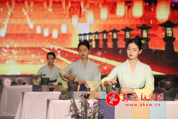 “一對(duì)紅鴉雀(喜鵲)飛起飛落叫喳喳,叫聲姐姐快燒茶,后院客來啦!……”活動(dòng)以陜南民歌舞《姐姐快燒茶》開場(chǎng),體現(xiàn)了家里來客要燒水泡茶的陜南民間傳統(tǒng)習(xí)俗和熱情好客的淳樸民風(fēng)!赌昴暧袀(gè)三月三》《茉莉茶歌》《茶飄香》等豐富多彩的茶專題現(xiàn)場(chǎng)表演,充分詮釋了采茶制茶、沏茶飲茶的多姿形態(tài)和茶鄉(xiāng)人民的淳樸風(fēng)貌。陜西省非物質(zhì)文化遺產(chǎn)傳承項(xiàng)目紫陽毛尖茶傳統(tǒng)制作技藝傳承人曾朝和,以及新一代茶人龍珊,與嘉賓們分享了安康制茶匠人對(duì)古法技藝的保護(hù)與傳承。