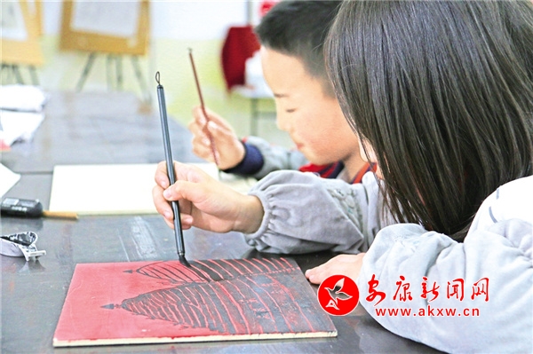 孩子們用刻刀和畫(huà)筆留下了校園美麗的風(fēng)景,也銘記著豐富多彩的童年生活。