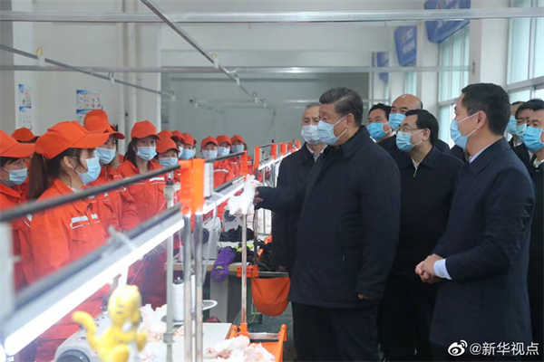 2020年4月21日,習近平總書記在安康市平利縣老縣鎮(zhèn)錦屏社區(qū)考察社區(qū)毛絨玩具廠