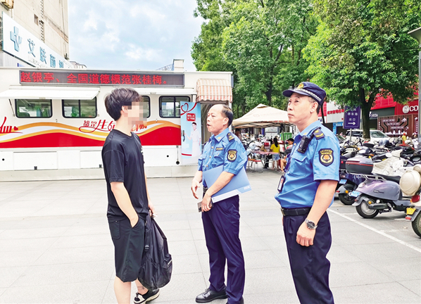 “同志,你的行為違反了《陜西省城市市容環(huán)境衛(wèi)生條例》第四十五條第一款的規(guī)定。”執(zhí)法人員張善偉迅速拍下錄像,向前緊走幾步亮明身份后說:“剛才你在公共場所隨地吐痰,按照規(guī)定需要現(xiàn)場改正,并處以10至50元罰款。但如果你在微信朋友圈轉(zhuǎn)發(fā)《‘痰’吐文雅 舉‘紙’得體》公益海報(bào)宣傳,點(diǎn)贊5人以上,就可以不用罰款。”張善偉向這名行人詳細(xì)介紹了相關(guān)規(guī)定。
