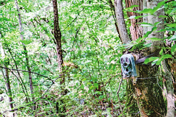 在這片自然保護(hù)區(qū)里,綁在樹干上的紅外相機(jī)隱蔽得很好,不仔細(xì)看,不會發(fā)現(xiàn)樹上多了人類的產(chǎn)物——相機(jī)。