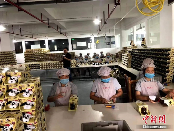 圖為工人們?cè)诠S制作毛絨玩具。受訪者供圖