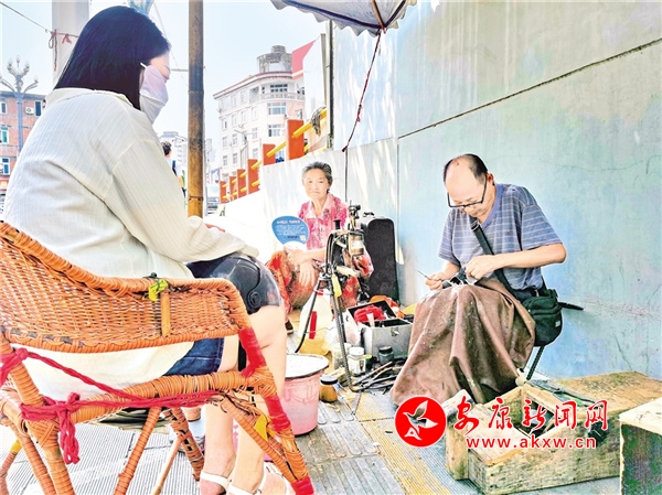 “我是這兒的?,主要是趙師傅活干得細(xì)致,修補(bǔ)出來(lái)的鞋子比較牢固,收費(fèi)也是有些地方的一半。而且很熱心,有時(shí)老人、孩子的其他東西需要維修,拿過(guò)來(lái)他總能想方設(shè)法幫忙修理。”領(lǐng)著孩子來(lái)此修鞋的趙女士說(shuō)。