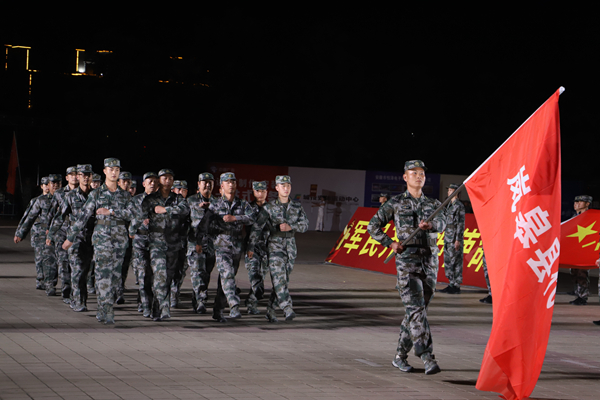 開幕式開始,縣區(qū)組、行業(yè)組等19個(gè)退役軍人代表隊(duì)邁著矯健的步伐入場(chǎng),觀眾以熱烈的掌聲歡迎他們的到來(lái)。