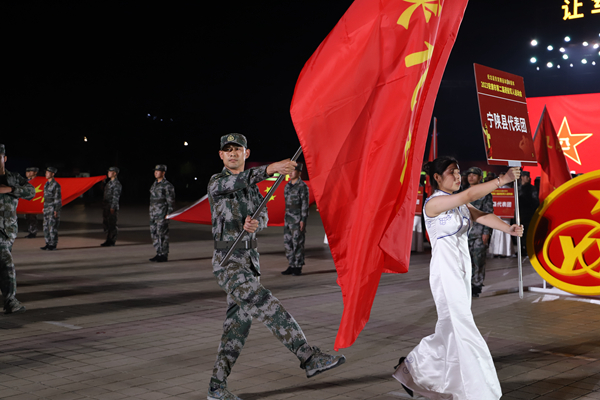 入場(chǎng)儀式完畢,全場(chǎng)起立,面向國(guó)旗,共同高唱國(guó)歌。伴隨著高亢雄壯的國(guó)歌聲,五星紅旗冉冉升起。在國(guó)旗下,全體退役軍人高舉右拳莊嚴(yán)宣誓,表達(dá)了退伍軍人堅(jiān)定不移聽(tīng)黨話、跟黨走的決心和意志。