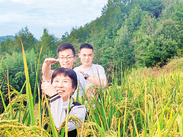 這是我省首例大面積試種成功的“巨型稻”,經(jīng)測量,平均株高1.6米,部分株高達(dá)1.8米,穗長約28厘米,是普通水稻的兩倍。“‘巨型稻’一個(gè)穗子有315粒谷子,普通水稻一個(gè)穗子只有171粒。普通水稻在我們這溝田里種植,一畝地產(chǎn)量不到400公斤,但‘巨型稻’每畝產(chǎn)量可達(dá)600公斤以上。今年試種的90畝地,總產(chǎn)量達(dá)到5萬公斤。”盤龍村黨支部書記顏顯琴難掩內(nèi)心的激動(dòng)。