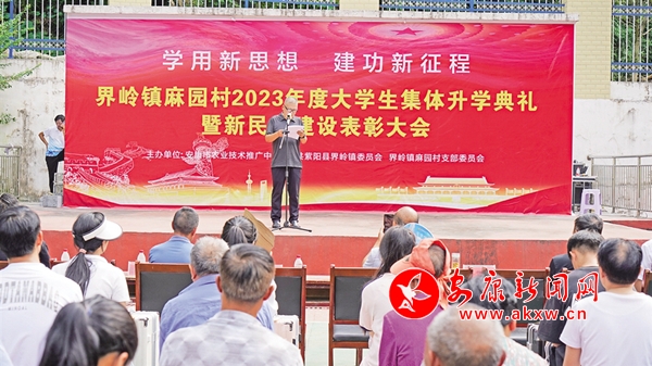 界嶺鎮(zhèn)麻園村2023年度集中升學禮暨新民風建設表彰活動現(xiàn)場——圖為學生家長公開承諾不辦“無事酒” 陳楚庚 攝