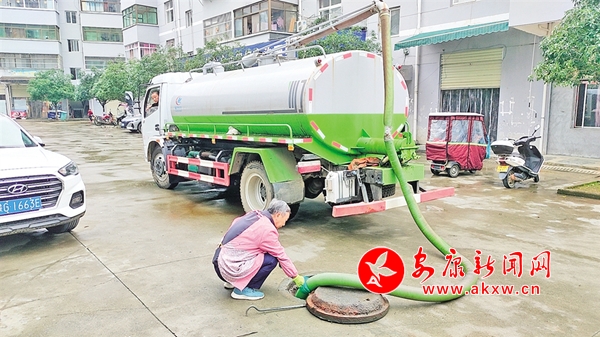 斑桃社區(qū)保潔員用吸糞車清理化糞池 陳楚庚 攝