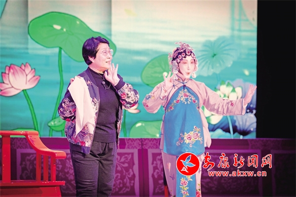 國家級傳承人王發(fā)蕓(左)老師指導學生演出