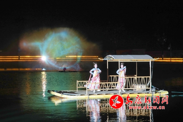 活動在開場舞《三月三上茶山》中拉開帷幕,傳統(tǒng)民樂與現(xiàn)代樂隊(duì)完美結(jié)合的樂隊(duì)表演《安康桃花源》、展現(xiàn)詩仙李白謫仙風(fēng)采的情景劇《李白巡游桃花源》、反映桃花源生態(tài)美景的歌伴舞《醉美桃花源》等文藝節(jié)目相繼上演,演員們精彩的表演贏得了現(xiàn)場觀眾陣陣掌聲。隨后,如同流星般璀璨奪目的非遺“打鐵花”和精彩絕倫的飛天鳳凰秀,更是把現(xiàn)場氣氛推向高潮,為大家?guī)砹艘粓鼍实囊曈X盛宴。