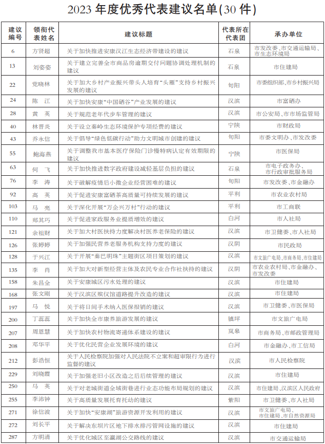 希望受表揚的代表珍惜榮譽,再接再厲。全體市人大代表要以受表揚的代表為榜樣,深入學(xué)習(xí)貫徹黨的二十大精神,全面落實中央和省委、市委人大工作會議要求,忠誠為黨分憂,忠實為民履職,密切聯(lián)系群眾,深入調(diào)查研究,廣泛聽民聲、匯民意、聚民智,進一步提出高質(zhì)量的建議、批評和意見,為加快建設(shè)漢江生態(tài)經(jīng)濟帶重要節(jié)點城市、在中國式現(xiàn)代化道路上聚力建設(shè)幸福安康作出更大貢獻!