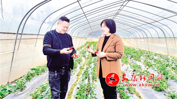 雙乳鎮(zhèn)黨委書記柳楊(右)走進(jìn)草莓園