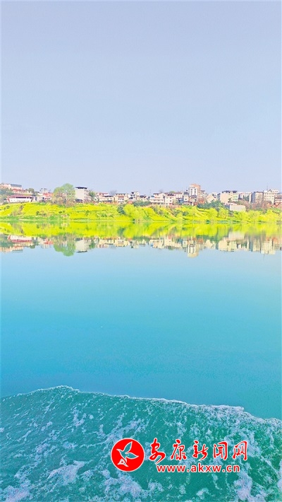 春分之際,漢江游船畫舫從西城坊出發(fā),途徑關(guān)廟、早陽等鎮(zhèn),直抵本次航行的終點(diǎn)站——石梯鎮(zhèn)。將近一個(gè)小時(shí)的航程中,兩岸美景盡收眼底,金黃燦爛的油菜花鋪陳在起伏的丘陵原野上,江岸楊柳依依、桃花盛開,民居與自然美景融為一體,倒映在碧綠的江面上,直教人看一眼便覺心曠神怡。