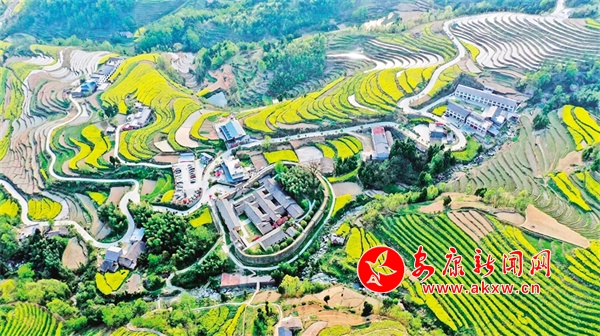 層層疊疊的梯田里,散落著田間的房舍、裊裊的炊煙、勞作的人群,好似一幅濃濃的山水田園詩畫。