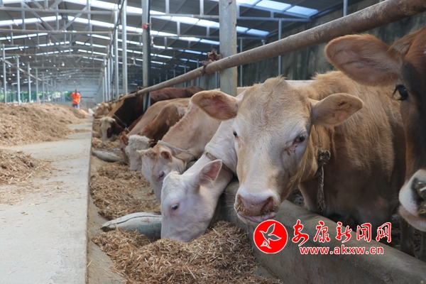 在肉牛養(yǎng)殖基地,飼養(yǎng)員王連全正在給牛喂草料。據(jù)他介紹,基地所用飼料大都產(chǎn)自本村,以前作為柴火的農(nóng)作物秸稈,也能和糧食一樣按斤賣作飼料原料;禺a(chǎn)生的牛糞通過干濕分離,液態(tài)部分流入沼氣池,糞渣則被運(yùn)輸至加工廠同秸稈、果樹枝、劣質(zhì)煙葉等制作成顆粒燃料或者有機(jī)肥,發(fā)酵好的沼液全量還田養(yǎng)地,顆粒燃料最終用于煙葉烘烤。肉牛養(yǎng)殖的資源最大化利用,是王院村“以地定養(yǎng)、以養(yǎng)肥地、種養(yǎng)互補(bǔ)”循環(huán)發(fā)展模式的縮影。