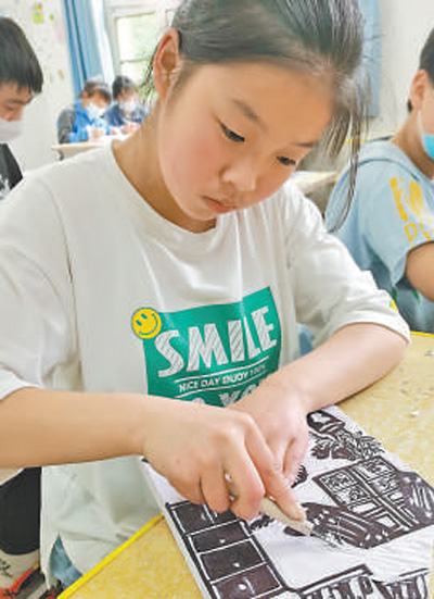 “美是有力量的。”在周墻看來,讓更多孩子認識了解傳統(tǒng)木刻版畫、掌握制作技藝,不僅可以用版畫作品展示中小學美育成果,還能促進對傳統(tǒng)技藝的保護傳承。