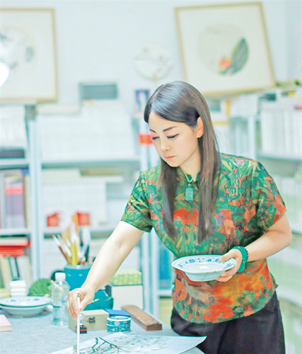 記者:除了詩(shī)歌和國(guó)畫,您還涉足了石頭畫、皮雕、裝飾畫等多種藝術(shù)形式。想了解一下您平時(shí)繪畫通常的尺寸?您認(rèn)為您的優(yōu)勢(shì)在哪里?弱點(diǎn)是什么,如何克服?