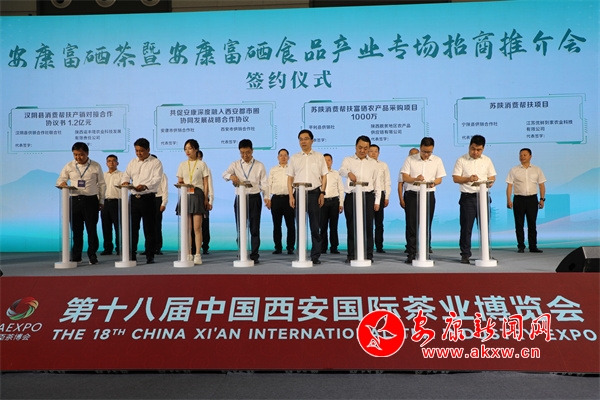 本網訊(記者 劉淵 通訊員 梁荔荔)5月31日,由安康市供銷合作社主辦的第十八屆中國西安國際茶業(yè)博覽會·安康富硒茶暨富硒食品招商推介活動在西安國際會展中心舉辦。現(xiàn)場簽約招商合作項目意向金額2.4億元。