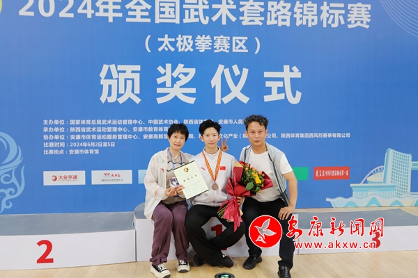 當運動健兒們在競技場上奮勇爭先,看臺上的那股暖流,是永遠包裹著他們的愛與柔情。“安康觀眾很熱情,爸爸媽媽在觀眾席,我很開心。”西安體院韓郭治宇獲得男子太極拳第三名。頒獎結束后,韓郭治宇懷抱鮮花,手舉證書和爸爸媽媽一起合影留念。