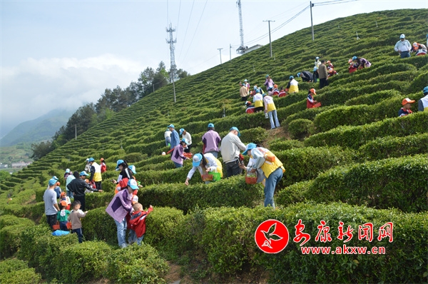 在金星村百草嶺,1000畝茶園根植于蜿蜒的山丘上,似波濤起伏,綠意蕩漾。
