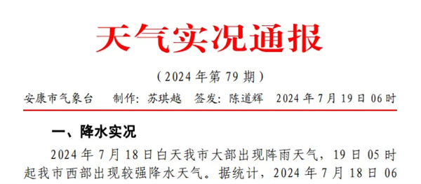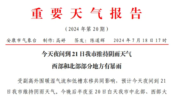 安康市氣象臺(tái)發(fā)布
