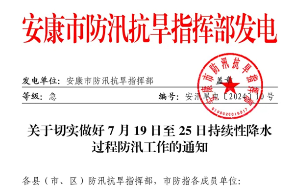 安康市防汛抗旱指揮部發(fā)布