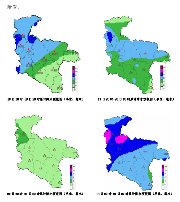 18后半夜至19日白天:小雨轉(zhuǎn)中雨,中北部、西部(寧陜、石泉、漢陰、紫陽(yáng)、漢濱中北部、旬陽(yáng)北部)大雨,局地暴雨。