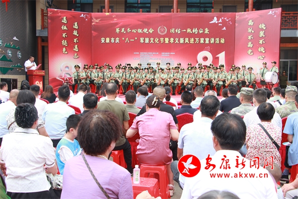 本網(wǎng)訊(記者 黃慧慧 通訊員 王典根)軍愛民,民擁軍,軍民融合情誼深。7月27日,由安康市雙擁工作領(lǐng)導(dǎo)小組辦公室、安康市退役軍人事務(wù)局、安康軍分區(qū)政治工作處、武警安康支隊、恒口示范區(qū)管委會共同主辦,以“軍民齊心擔(dān)使命 團結(jié)一致鑄安康”為主題的安康市慶“八一”軍旅文化節(jié)暨孝義新風(fēng)進萬家宣講活動在恒口示范區(qū)南月村舉行,軍地領(lǐng)導(dǎo)、部隊官兵、退役軍人、現(xiàn)役軍人家屬及群眾代表共300余人參加活動。