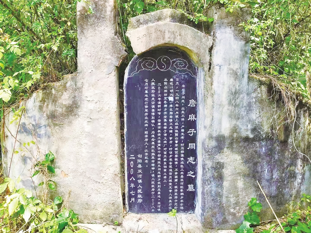 在旬陽市雙河鎮(zhèn)卷棚村老火紙場,一個(gè)小地名叫做椅子灣的對面黃土梁上,安葬著一位當(dāng)?shù)卮迕窨诳谙鄠,傳了一輩又一輩,每一輩人都只知道這座無名烈士墓的墓主人,外號叫“詹麻子”,至于他是哪里人,生于何時(shí),犧牲時(shí)多大,有無兄弟姐妹與妻兒等,現(xiàn)如今仍無人知曉。
