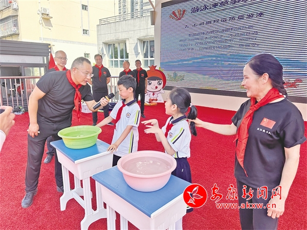救生隊(duì)員為中小學(xué)生普及游泳自救知識