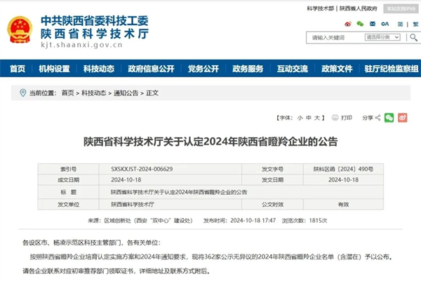 10月18日,陜西省科學(xué)技術(shù)廳公布了2024年度陜西省瞪羚企業(yè)名單,經(jīng)過(guò)層層篩選和嚴(yán)格評(píng)審,安康大數(shù)據(jù)公司成功入選“陜西省瞪羚企業(yè)”榜單。