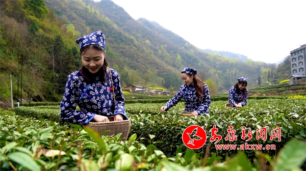 站在鳳凰村電商服務(wù)點(diǎn)向?qū)Π锻,茶園或成塊狀鋪滿,或呈梯狀沿山而上,層層疊疊、連綿起伏。
